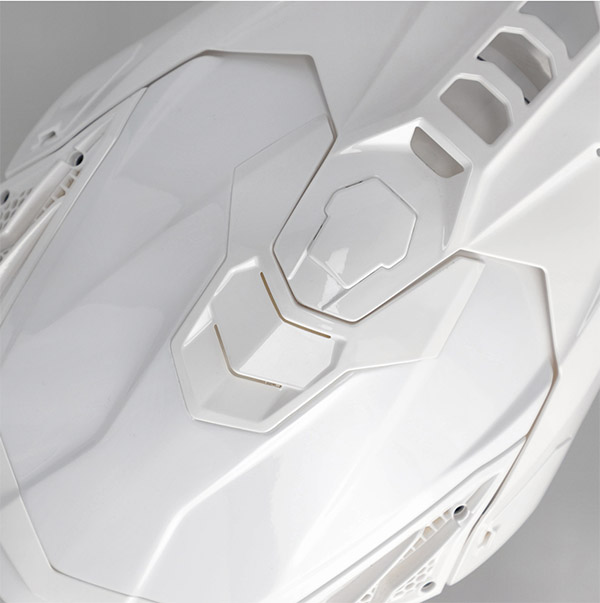 Il design del casco fonde lo stile europeo e americano e incorpora una serie di caratteristiche tecniche pensate per l’uso racing. Il frontino senza viti contribuisce a ridurre il peso e crea un’integrazione più pulita con la calotta, mentre le prese d’aria rimovibili facilitano la pulizia.