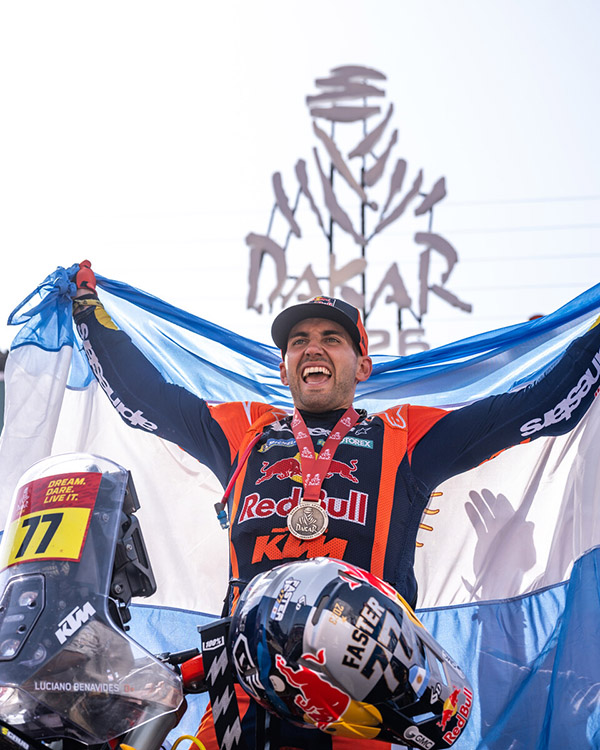 Rifiutandosi di arrendersi nonostante le battute d’arresto, la pressione e una delle battaglie più serrate nella storia della Dakar, l’argentino ha dato il massimo quando contava di più, attaccando fino all’ultimo chilometro in sella alla sua KTM 450 RALLY e conquistando la sua prima vittoria alla Dakar.