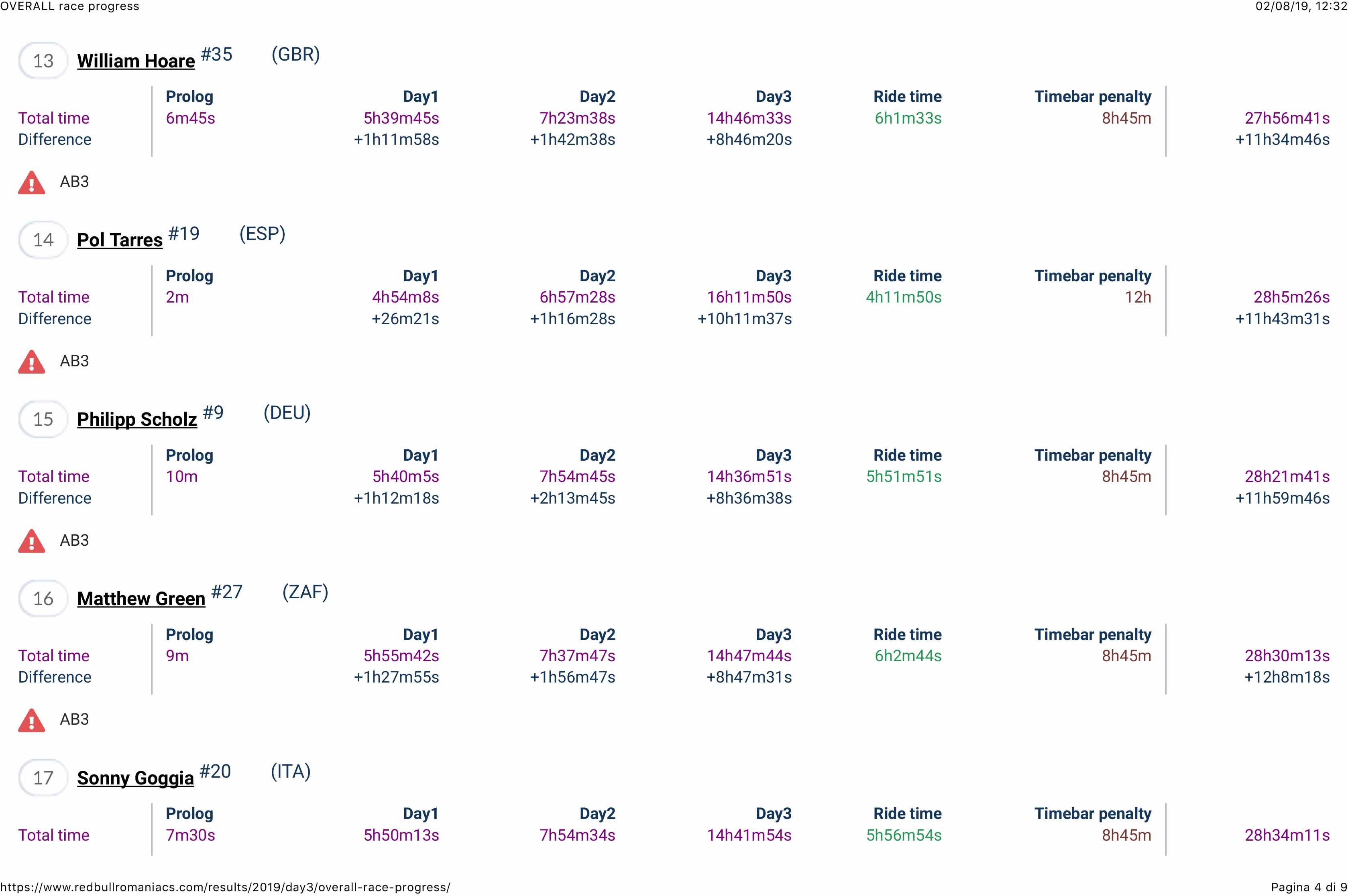 OVERALL race progress