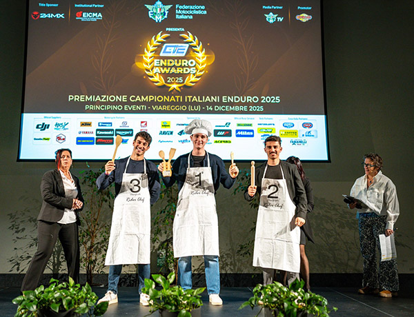 Con lui anche alcuni Consiglieri Federali, il Coordinatore nazionale dell’Enduro, Franco Gualdi e il Direttore Tecnico, Cristian Rossi oltre al responsabile del Comitato Regionale, Alessandro Roscelli che si sono alternati sul palco a consegnare le medaglie d’oro, argento e bronzo agli oltre 100 piloti che si sono distinti nel corso della stagione 2025.