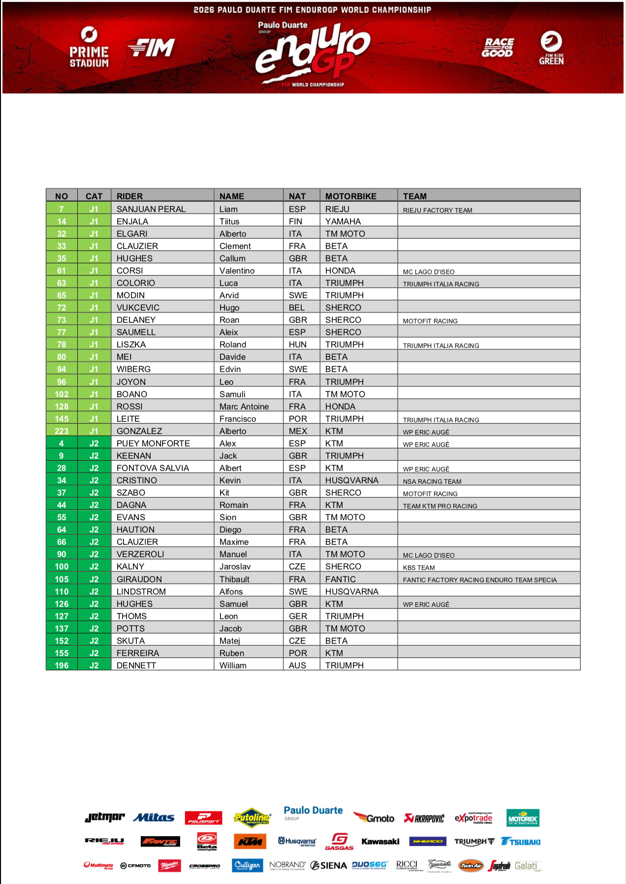 Con l’avvicinarsi della prima tappa della stagione EnduroGP 2026, la lista dei pre-iscritti è ora disponibile per la consultazione.